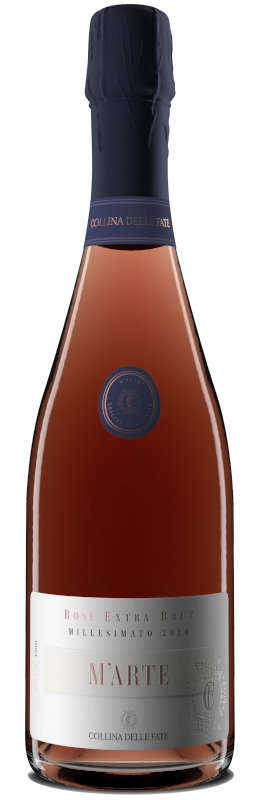 M’ARTE, lo spumante metodo classico di Collina delle Fate, è un omaggio all’arte in tutte le sue forme. Il nome stesso è un gioco di parole che fonde il possessivo ‘mio’ con la parola ‘arte’, suggerendo un legame personale e intimo con la creatività e la bellezza. La delicatezza del rosa evoca la sensazione di un momento fugace, di un’opera d’arte da apprezzare come un fiore, affascinante proprio perché non eterna. Allo stesso tempo, è moderna, poiché nasce dalle sfumature della saggezza e della tradizione, unite a una perfetta padronanza delle tecniche.Le tonalità rosa di un vino derivano dalla capacità di gestire finemente la fase di macerazione, per “cogliere l’attimo”, il momento giusto per separare il mosto dalle bucce con tempestività e precisione.