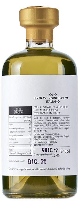 The soil is predominantly calcareous with a clay matrix, with perfect granulation for water drainage, suitable for accommodating and enhancing the olive cultivars grown at an average height of 400 meters above sea level. The cultivation system includes the polyconic vase, with a planting density of 277 plants/Ha and a spacing of 6x6. The average yield per plant is 20 kilograms of olives, equivalent to 2.4 liters of oil. (Oil yield: 12%).